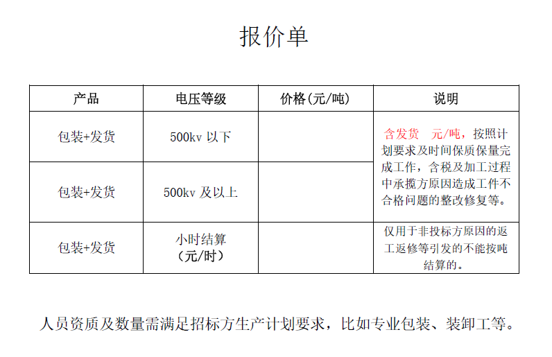 2、大包形式,人员管理、劳保、工伤、场地及设备设施安全卫生等均由报价单位负责,设备和辅材由招标方提供。具体及其他要求以合同为准(该公告同样有效);